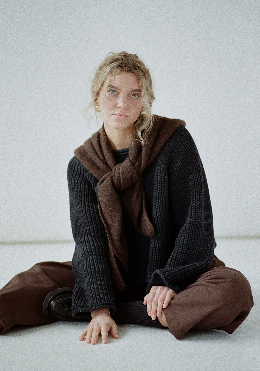 Our AW25 collection is full of oversized coats, super soft knits, denim, and wool accessories in rich browns, vibrant reds, light grey to charcoal, and a bit of navy, chartreuse, and burgandy.