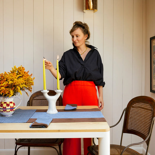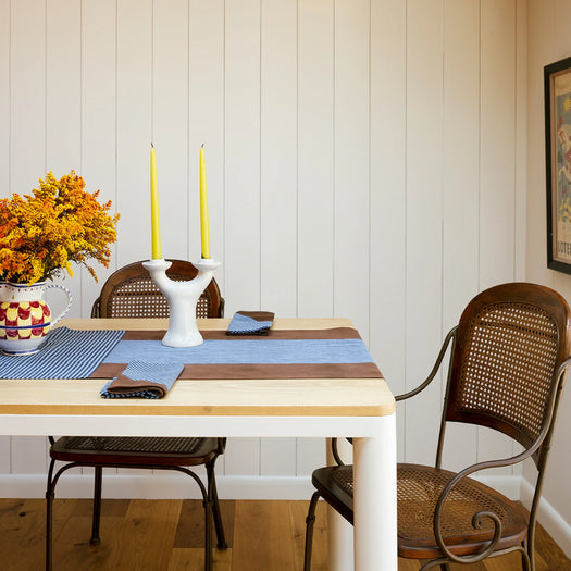 Block Shop's beloved table runners—now in this striking new pattern. Hand block printed on the loveliest cotton-linen blend, the Crosshatch Runner in Sapphire is a true showstopper, that will bring your tabletop to life.
