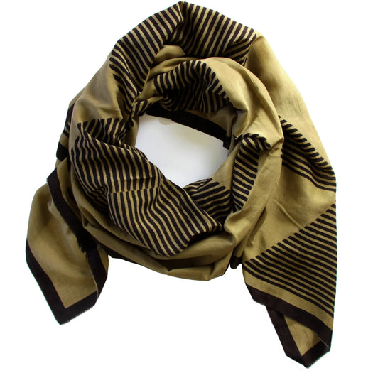 A Block Shop classic and best seller. Temple is a riff on the wall drawings of Sol LeWitt in a deep, green-gold brown with soft black printing. One of our favorite scarves to hang on the wall.