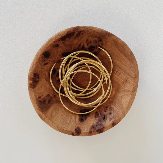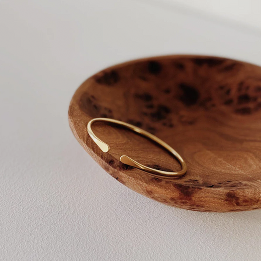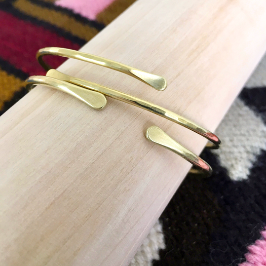 Each bracelet is a one of a kind piece, with subtle variations in length and thickness. The Bonnie Bracelet is available in two varieties, the cuff and the wrap. The cuff is open, while the wrap overlaps around the wrist.