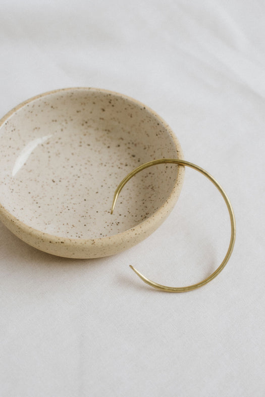 This brass bracelet is hand-forged by the seaside in Cape Cod, MA. Eco friendly, they leave behind a very small carbon footprint in their production; the only materials used are brass, a hammer and some elbow grease.