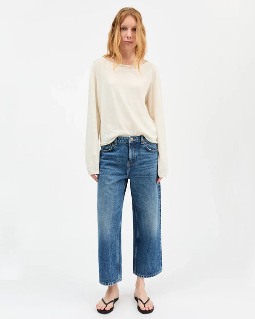 The Taylor Cropped Jeans in heavy organic cotton are from Skall Studio’s GOTS certified denim line.