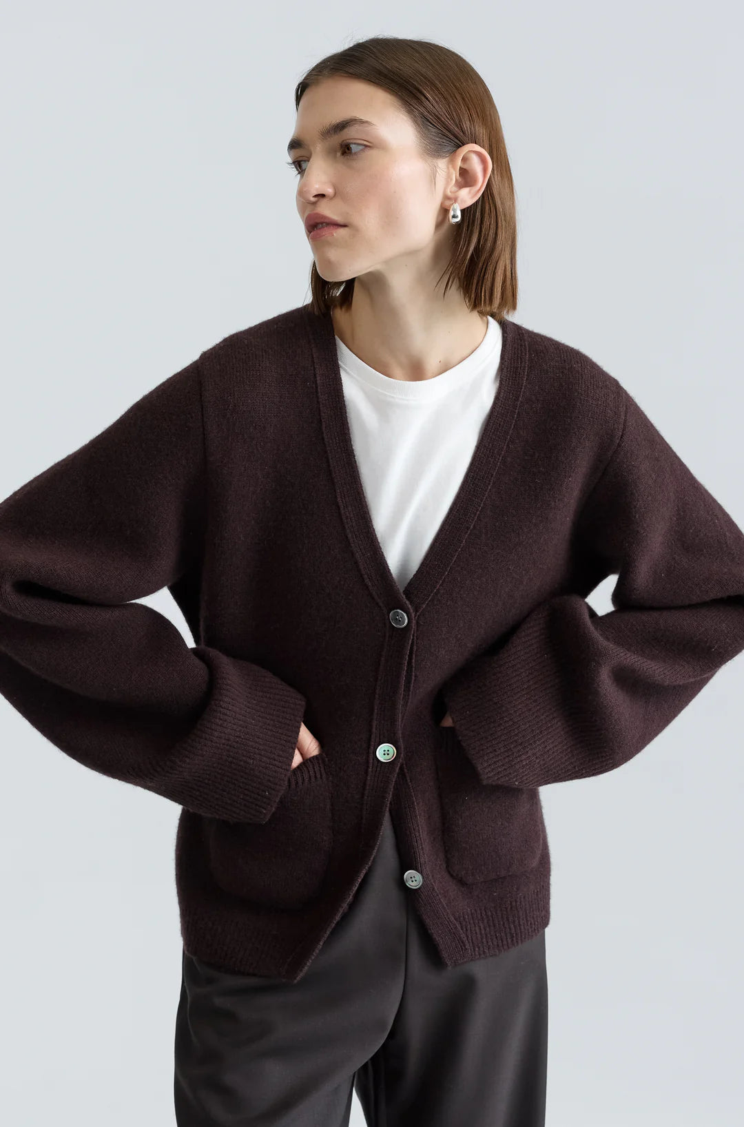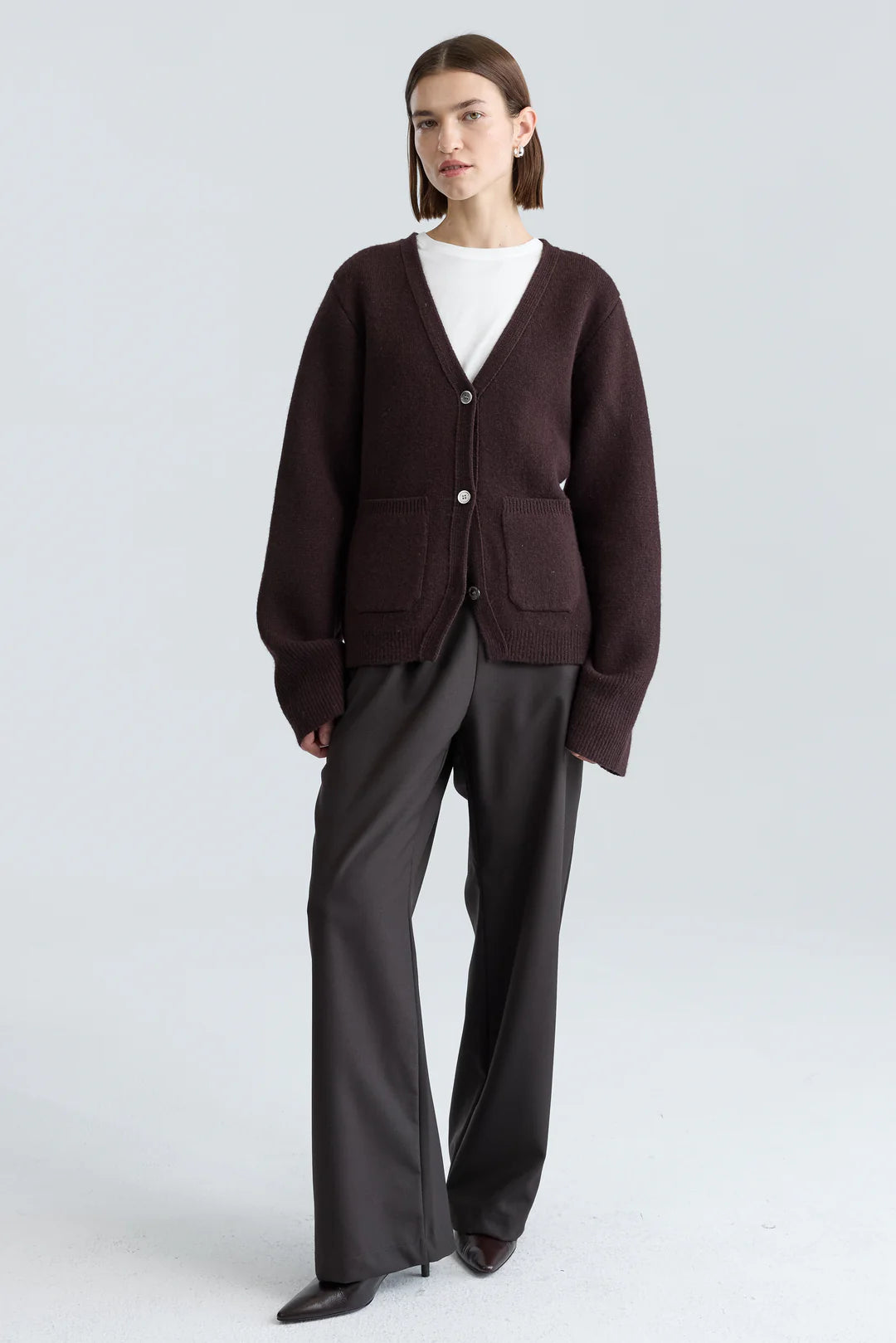 V Neck Cardigan - Dark Brown