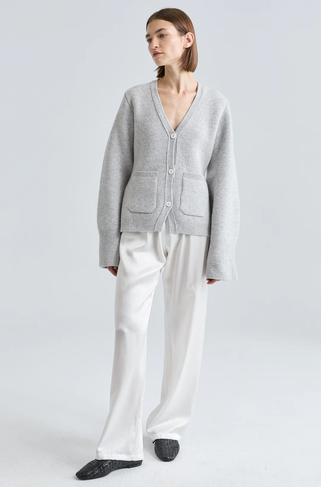 V Neck Cardigan - Light Grey