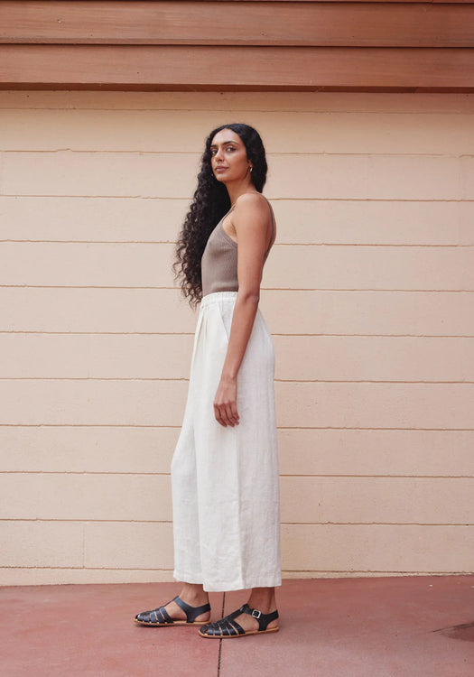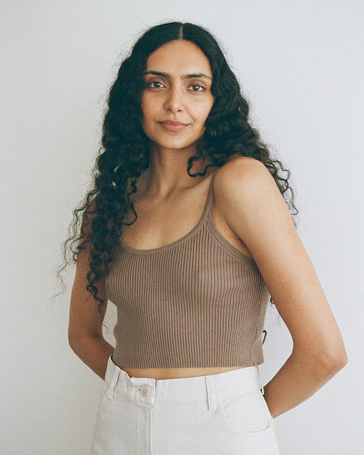 The Eris Tank is knit from a super soft and breathable organic cotton in a lightweight and structured rib with camisole styling. An easy everyday piece designed to pair with everything.