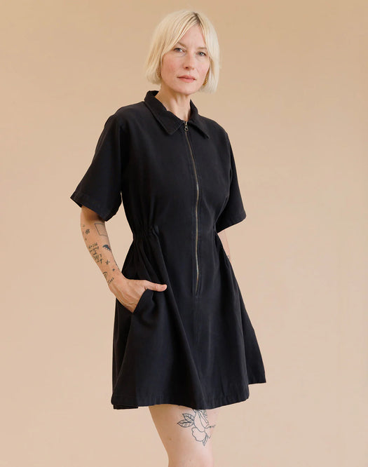Noble's best selling Utility Dress in a buttery soft GOTS-certified organic cotton canvas. Featuring oversized sleeves, signature cinched waist, and a flattering oversized skirt. BONUS: giant pockets for all of your stuff.