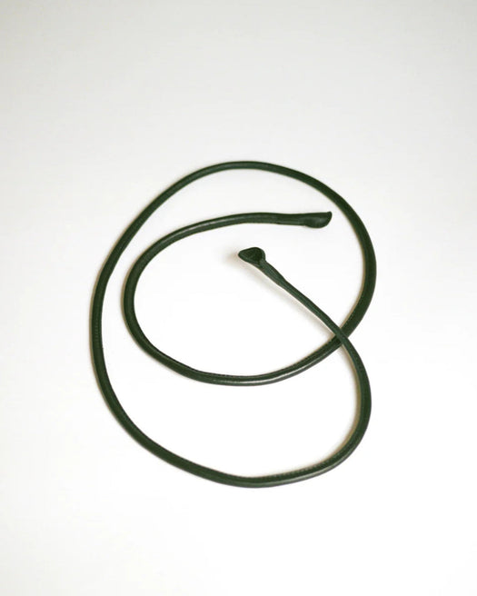 A rolled belt with circular finished ends. This style is finer and longer than the classic Knot belt and also drapes a bit more on the body. Multiple tying and styling variations possible. Great over a blazer, sweater or simply through your belt loops.