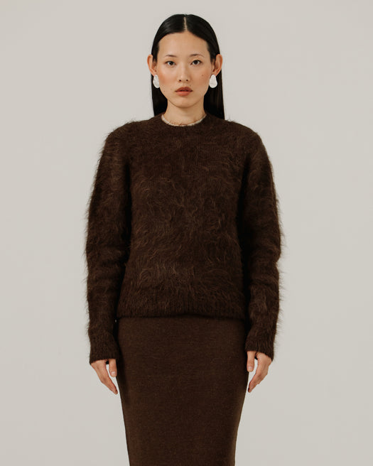 The Suri Alpaca Crew Neck is a mid-weight sweater with a relaxed silhouette and classic fit—ideal for layering. Knit from exceptionally soft Suri alpaca, its naturally long, silky fibres highlight the unique texture and beautiful drape of this rare Peruvian fibre.