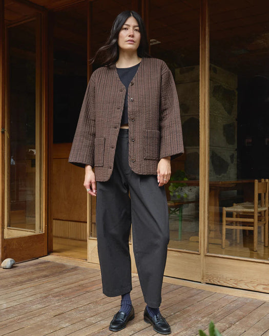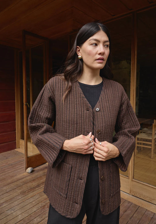 A mid weight structured jacket to layer up or down as the weather cools. Designed with a length straight fit, two front pockets, and tonal corozo nut buttons.