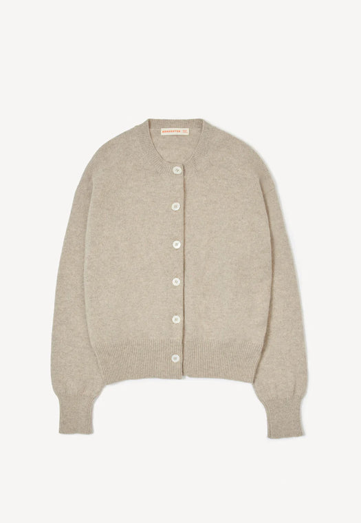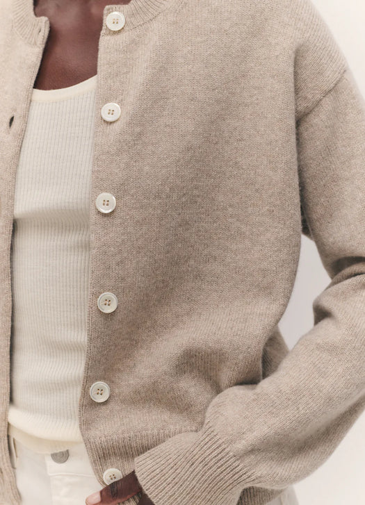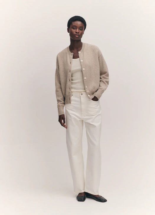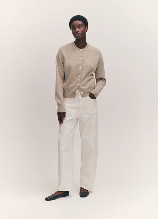 The Ada Crewneck Cardigan made from the softest, Scottish-spun geelong lambswool. Inspired by the old school classicism of a crewneck cardigan but with a gently modern sensibility, proportions are softened and subtly slouchy to create a relaxed silhouette. Finished with responsibly sourced Trocus shell buttons.