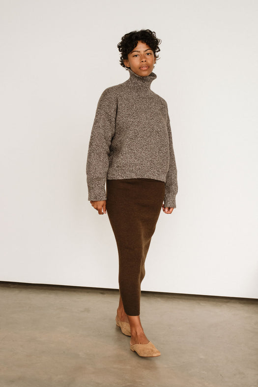 Caragh Chunky Crop High Neck - Dark Brown Marle