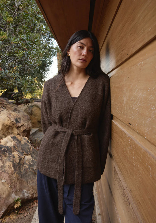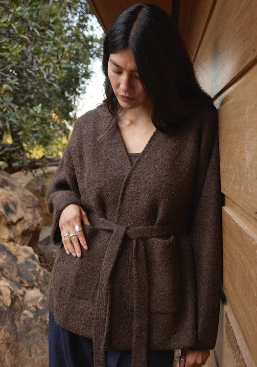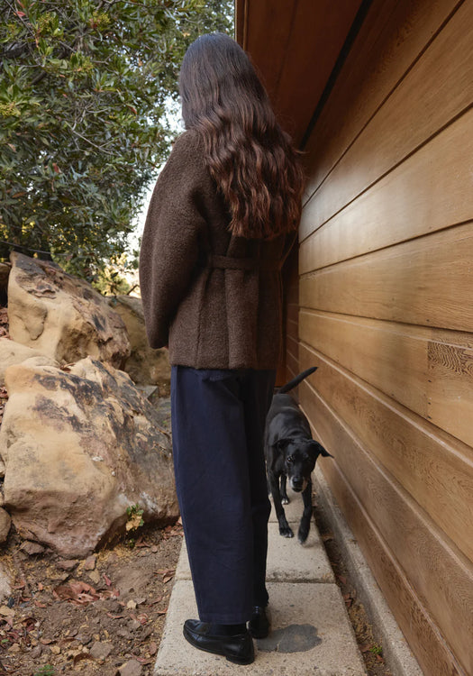 The beloved sweater coat is back this season in a felted baby alpaca. Styled with two waist level pockets and a belt with loops to keep it closed. The hand felted technique adds a beautiful soft and fuzzy texture that feels both elevated and casual.