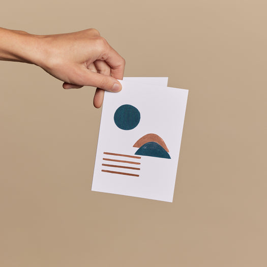 This listing is for one greeting card featuring ‘Land’ printed on a sturdy mid-weight card with a soft matte finish. Card size is 4 x 5.75 inches and comes with a blank white envelope. Right inside and back of the card is left blank. Left inside corner contains a small handwritten artist signature and title of the artwork.