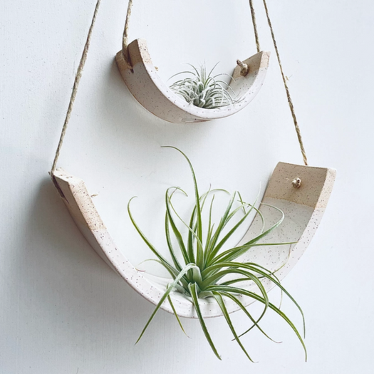 Developed to showcase each air plant's individual beauty, the air plant cradles are the ideal balance between sculpture and functionality. Each cradle is completely hand crafted out of unglazed natural white earthenware clay that is slow dried for maximum strength and fired to 1945°. There is a hole in the center that measures approx 1 1/2" wide for securing your air plant if it has a bulb.