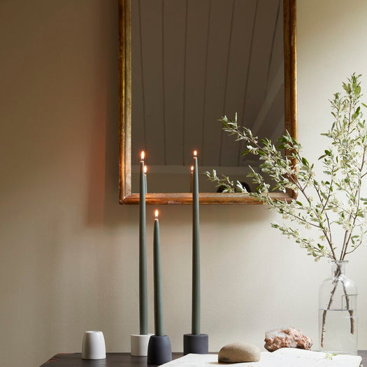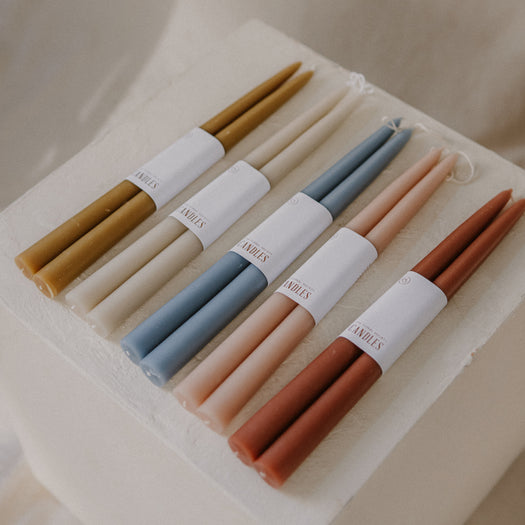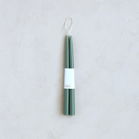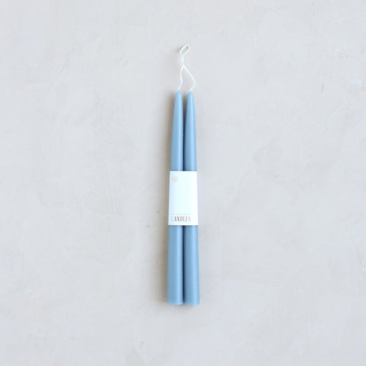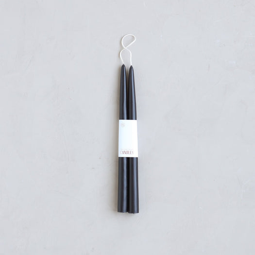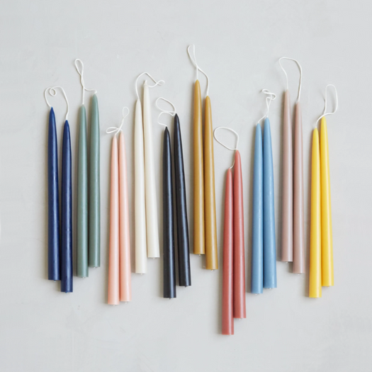 Tapers are crafted to burn drip-free at a rate of approximately 1 hour per inch. Each candle is dipped 35 times for a superior depth of color, and pairs are joined by a braided cotton wick for the cleanest burn.