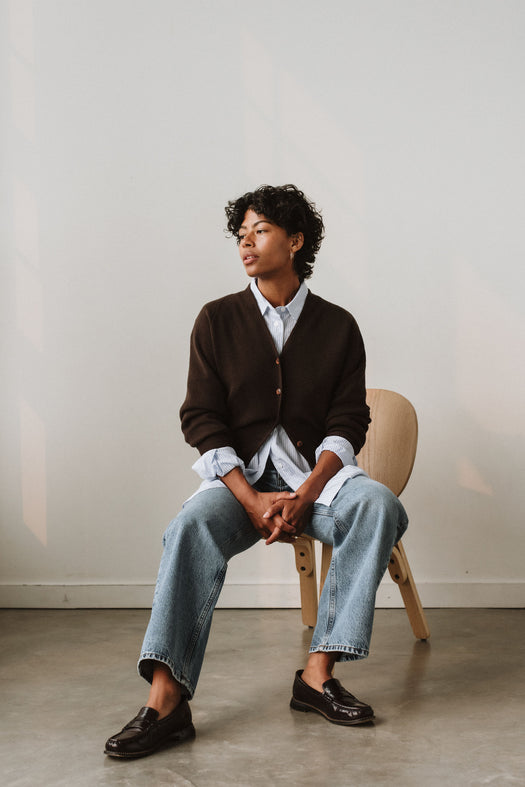Merino & Cashmere Cardigan - Brown