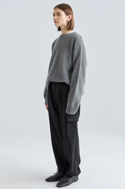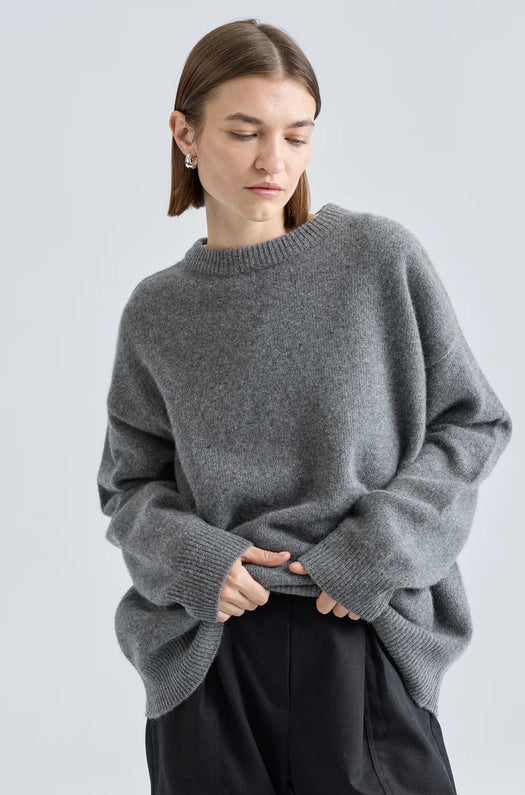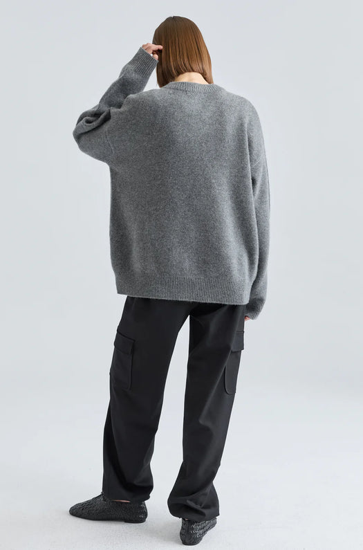 The most luxurious and softest oversized wool cashmere crewneck sweater. The dropped shoulders and rounded stuffed crew neck line detail gives a cool modern effect. There is also an extra layer of detail with wide ribbings on the sleeves and hemlines. The warmth and coziness of this sweater is something you will want to wear all winter long.