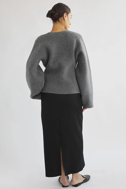 V Neck Cardigan - Grey