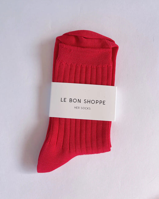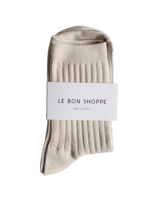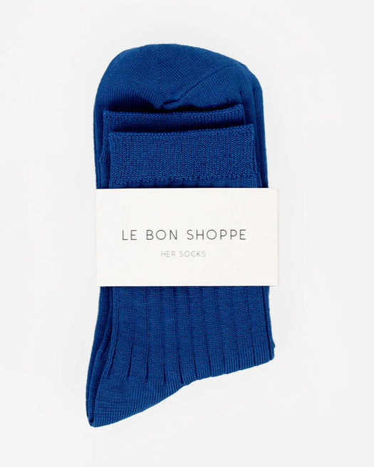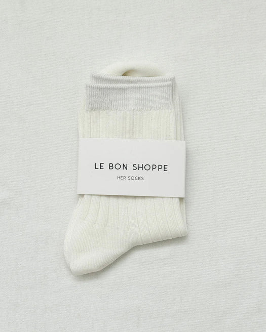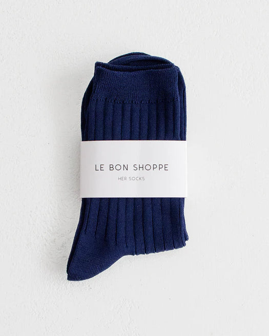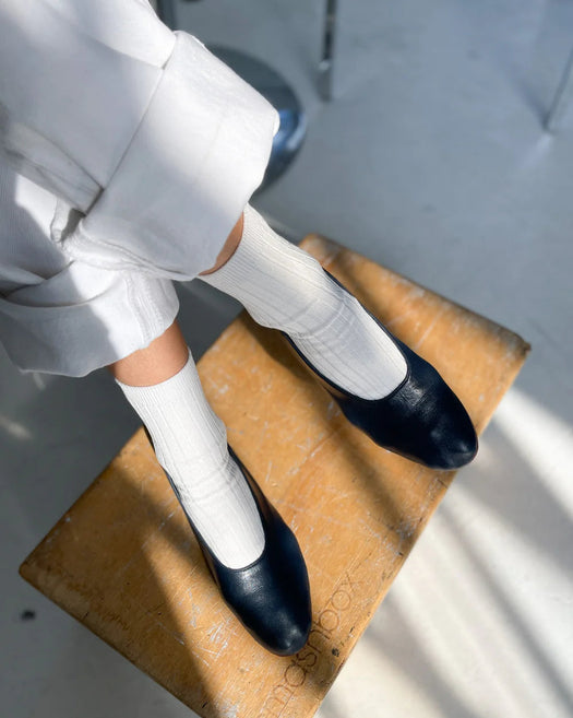 New and improved Her Socks in Mercerized Combed Cotton. The perfect height, knit rib socks.