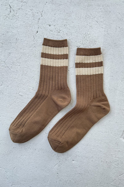 New and improved Her Socks in Mercerized Combed Cotton. The perfect height, knit rib socks.