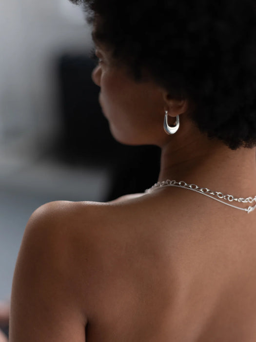 The Emmeline Hoops features an oval form with soft lines and a slightly abstract shape. A classic silhouette with a modern twist these earrings work for any occasion from day to night.