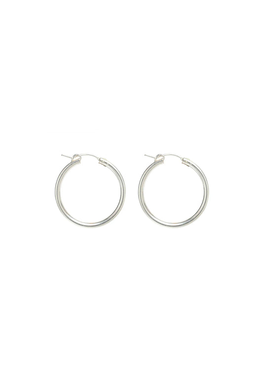Sterling Silver medium sized tube hoops featuring a smooth rounded profile. They are both lightweight yet noticeable, making them an ideal everyday earrring.
