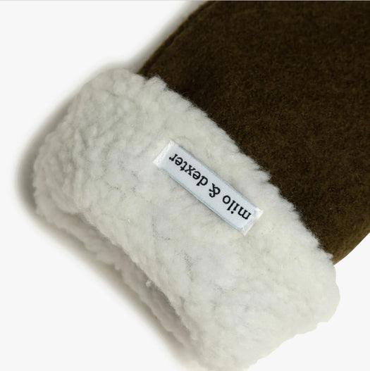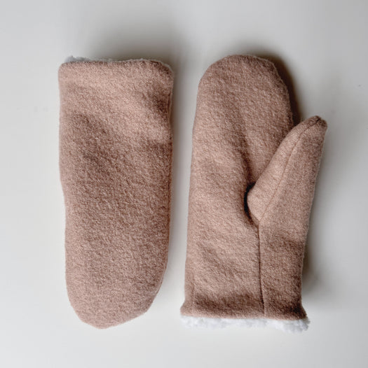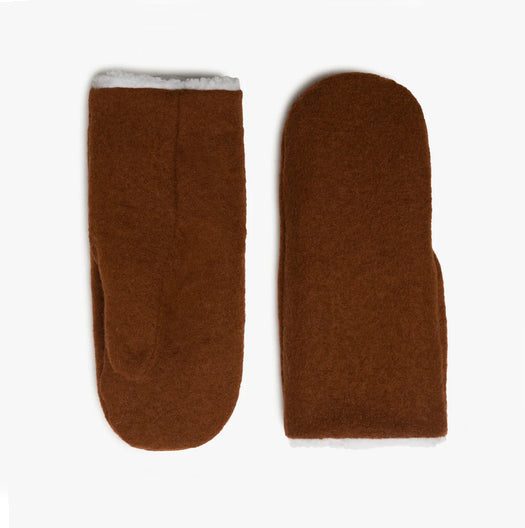 These classic wool knitted mittens an all natural sherpa lining and an invisible elastic for a comfortable and a refined look. The wool used is 100% merino wool.