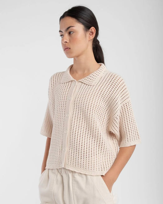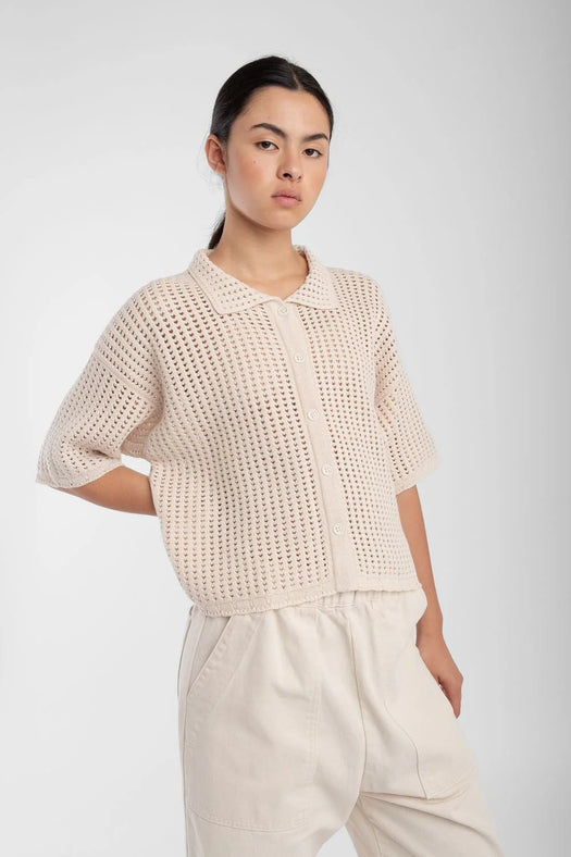 Open Knit Polo - Cream
