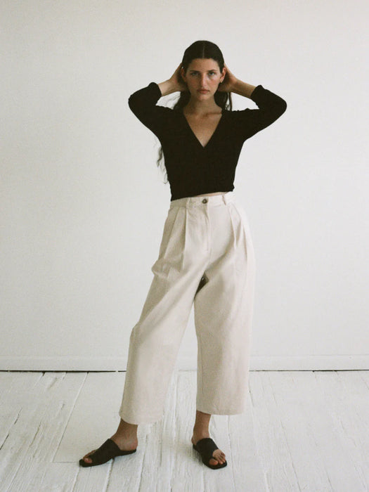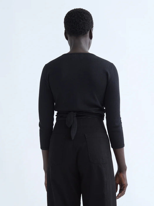 Universally flattering and effortless to wear, the Elsa Top is a wrapping top featuring a transitional alpaca and cotton yarn that is not sheer and has beautiful texture and breathability. The addition of the alpaca yarn, while being extremely soft and beautiful, transitions this top into the cooler months ahead. The Elsa Top features a dance wear inspired cut with ¾ length sleeves and an adjustable V neckline.