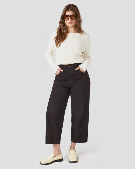The best-selling Decade pant, known for its cool, relaxed silhouette and subtly sculpted barrel leg. Cropped at the ankle with single-welt back pockets and a classic button fly, it’s polished, comfortable, and endlessly wearable. Cut from breathable 100% cotton denim that softens beautifully with wear and finished with their signature custom hardware.