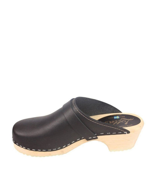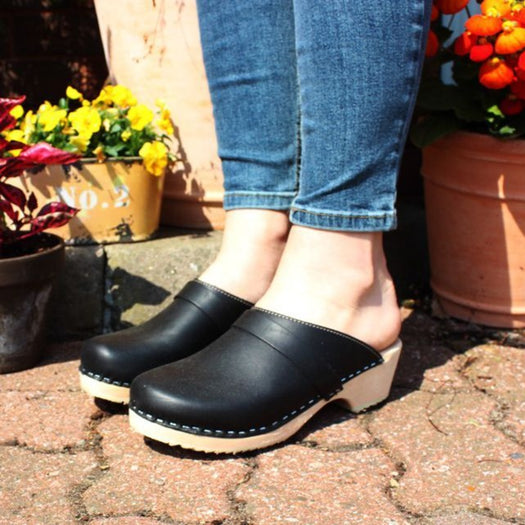 Lotta From Stockholm clogs are crafted with love and care in Sweden using vegetable tanned full grain Italian leather for the uppers and seasoned Swedish Alder from FSC managed forests for the base. A 5cm (2 inch) heel with 2cm (0.75 inches) platform provides enough height to allow the properly shaped footbed to be formed which includes both a pronounced arch support and a big toe indent for easier walking.