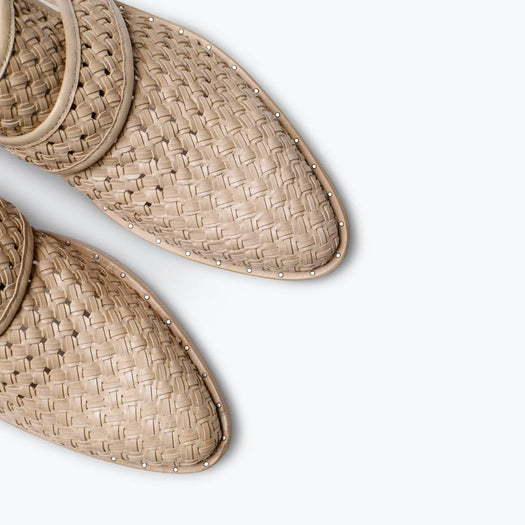 KEEN is handwoven by a community of women in Elda, Spain. The leather is sourced from the finest tanneries across Italy. Each upper is cut, sewn and lasted by Spanish artisans who are experts in their craft. The components are developed and tested with neighboring factories in Elda, and perfected by FREDA’s design team in Sausalito. Every pair of the women's handwoven slip-on mule is hand finished, from it’s woven upper down to its sole.