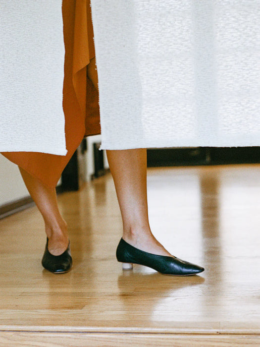 The Paz is an updated ballet flat with a squared-off almond toe in smooth leather.