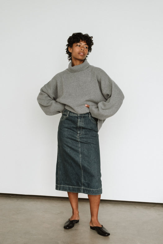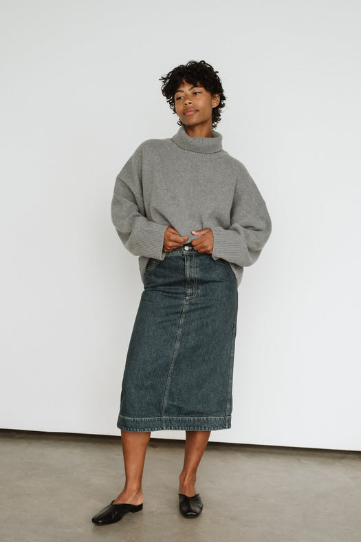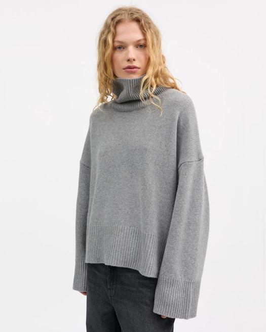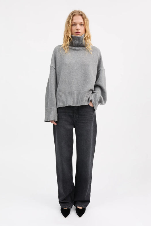Silene T-neck is an oversized knit crafted from exclusive merino wool. The knit has a T-neck, dropped shoulders and ribbed hems.