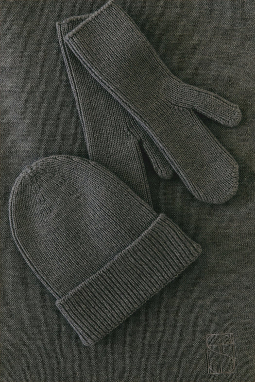 The Slow Label mittens are extra long, to keep your hands and forearms nice and warm. They are made from 100% Italian extrafine merino wool yarn for comfort and warmth.