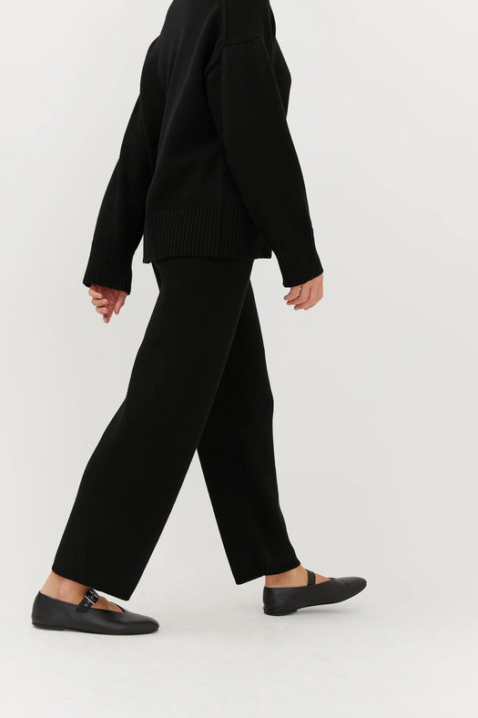 The Wool Pants have a relaxed fit. If you are between sizes, you may want to size down, as knitwear cannot be altered easily.
