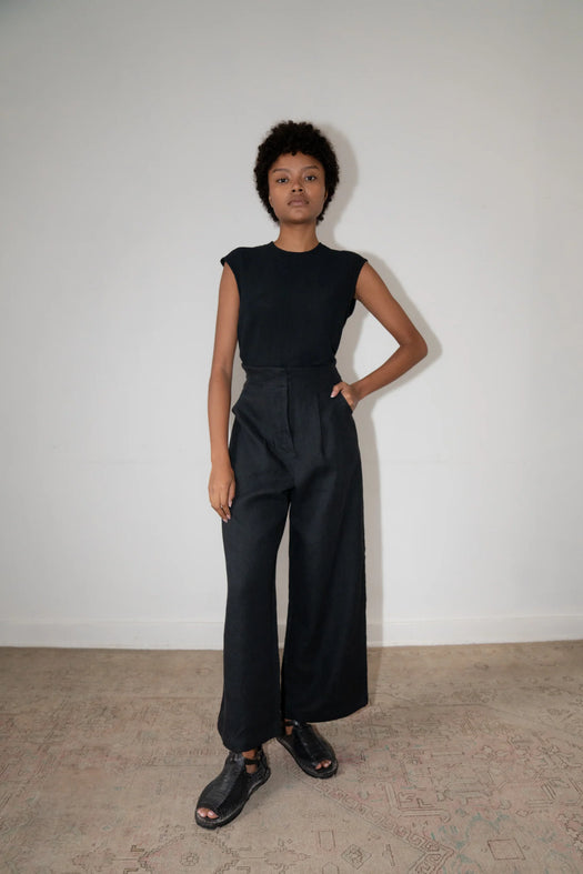 The Rea Pant features masculine & feminine details that are melded together to create a relaxed look by featuring wide pleats in the front and an elastic band at the back waist allowing the pants to sit high waisted.