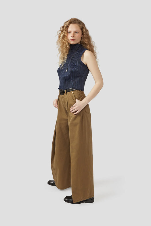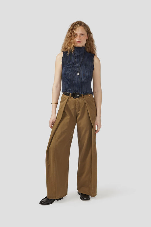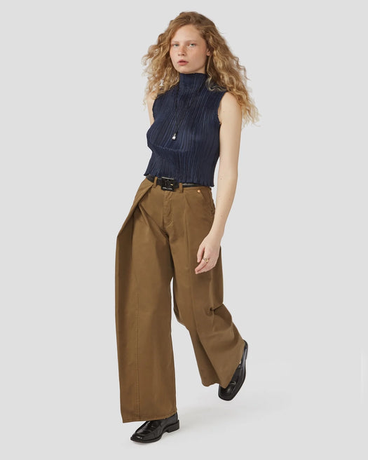 Just like a fortune cookie, these pants feature deeply folded pleats that open, shift and change with movement. The exaggerated drape creates a striking silhouette that commands attention from all-eyes.